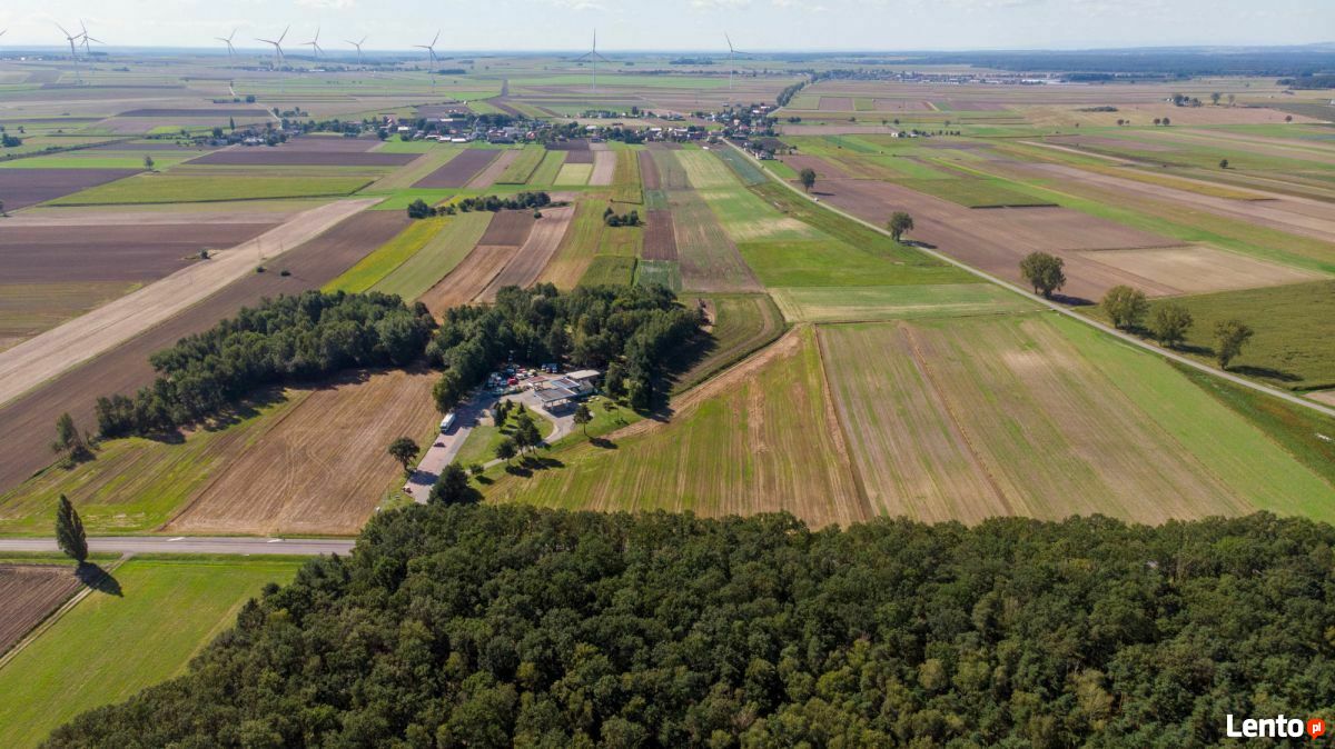 Zgodnie z miejscowym planem zagospodarowania przestrzennego część działki, około 9.283m2 przeznaczona jest pod zabudowę usługową (prostokąt o wymiarach 148,5m x 61m) z dogodnym dojazdem ulicą asfaltową, pozostała część działki (około 6921m2), bez MPZP a w studium uwarunkowań przeznaczona jest pod zabudowę komercyjno - produkcyjną.